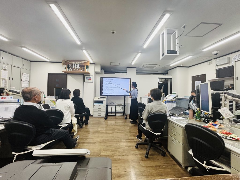アイファーストでは、定期的に全体会議を開催し、社員一人ひとりの意見を取り入れることを大切にしています。