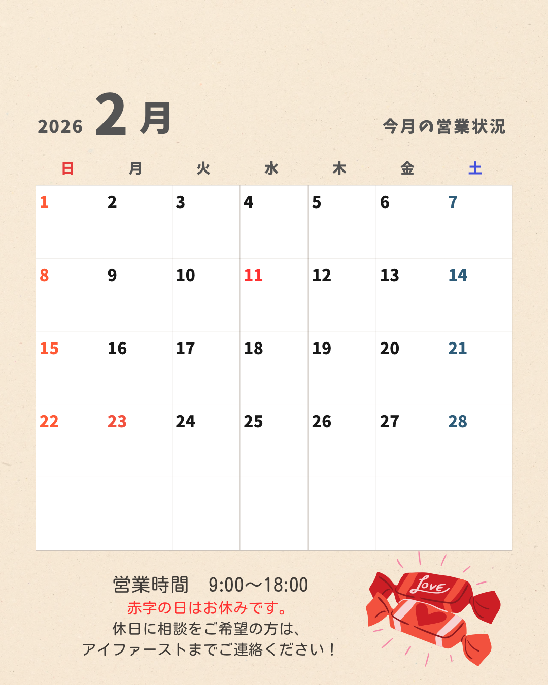 誠に勝手ながら、上記、赤字の日を休業とさせていただきます。