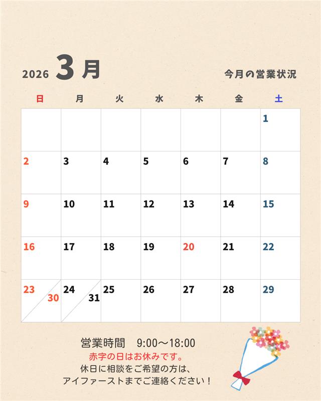 3月の営業カレンダー
