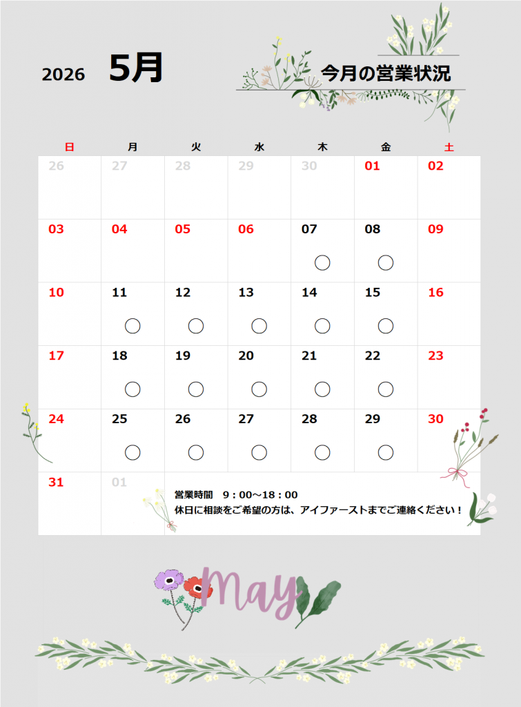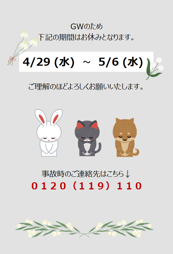 5月の営業カレンダー/GW休業のお知らせ