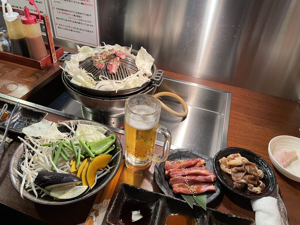 夜はジンギスカンでサッポロクラシックの生ビールです。