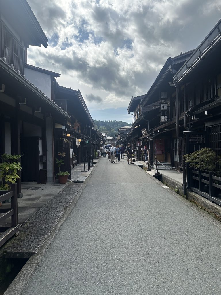 木造の町家が並ぶ通りには、味噌や漬物、ソフトクリームなどのお店、飛騨の民芸品を扱う店が立ち並んでいました。