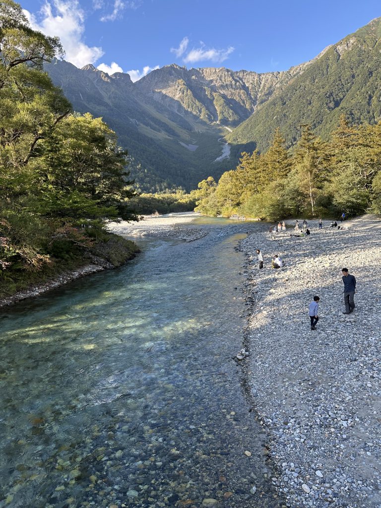 初日は上高地を散策。約2時間のコースを歩きながら、澄んだ空気と透き通る梓川の流れ、そしてそびえ立つ穂高連峰の雄大な姿に心を奪われました。