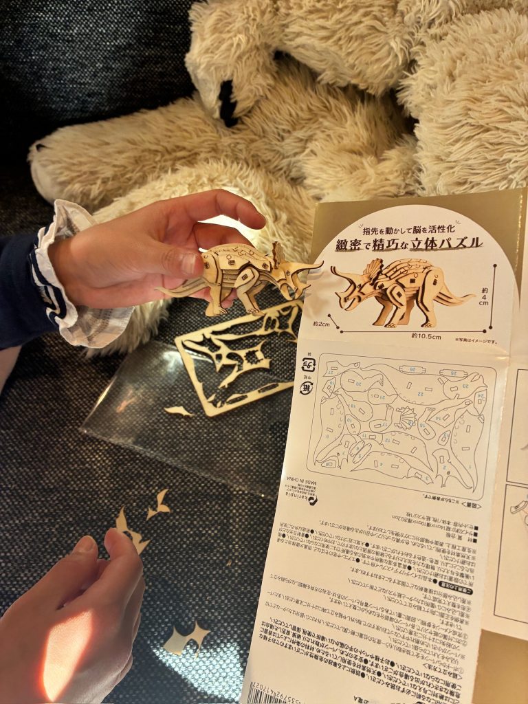 食事の合間に、姪っ子が今ハマっているらしいウッドクラフトを見せてくれました。細かい木のパーツで瞬く間に恐竜を作っていて、とても器用で感心しました。また、姉弟は本を組み合わせてピタゴラスイッチをしたり、ヘリコプターのラジコンを上手に飛ばしたり、絵を描いたり、ボール投げをしたり、短時間でさまざまな遊びを繰り広げており、いくらでもいろいろなことができるのだなと思いました。子供たちの遊びに付き合っているととても楽しくてすぐに時間が過ぎてしまいますね。最後にはバレエも踊って見せてくれて、とても上手で感激しました。
