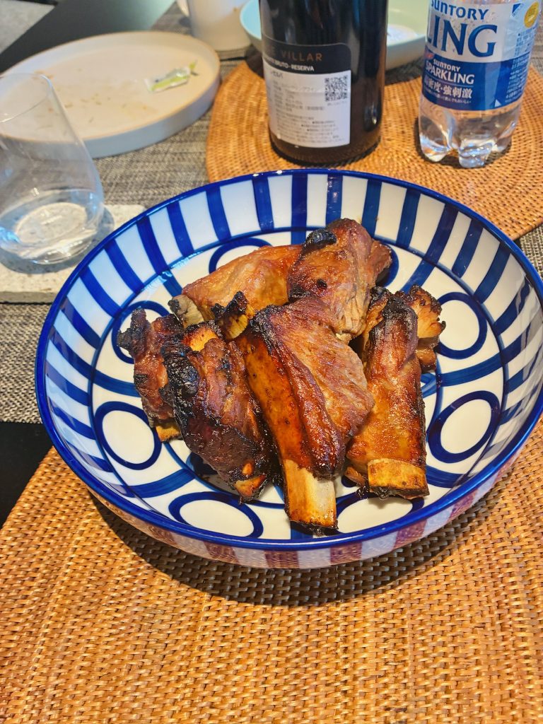 姉の手料理はどれもレストラン並みの仕上がりですが、私はやっぱりスペアリブが一番大好物です。一晩漬けて味の染み込んだお肉は焼いた後も柔らかくジューシーで、スペアリブはこれ以外考えられないくらい美味しいです。