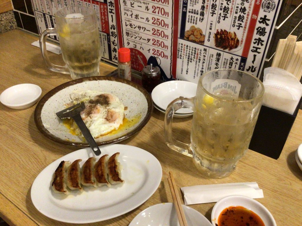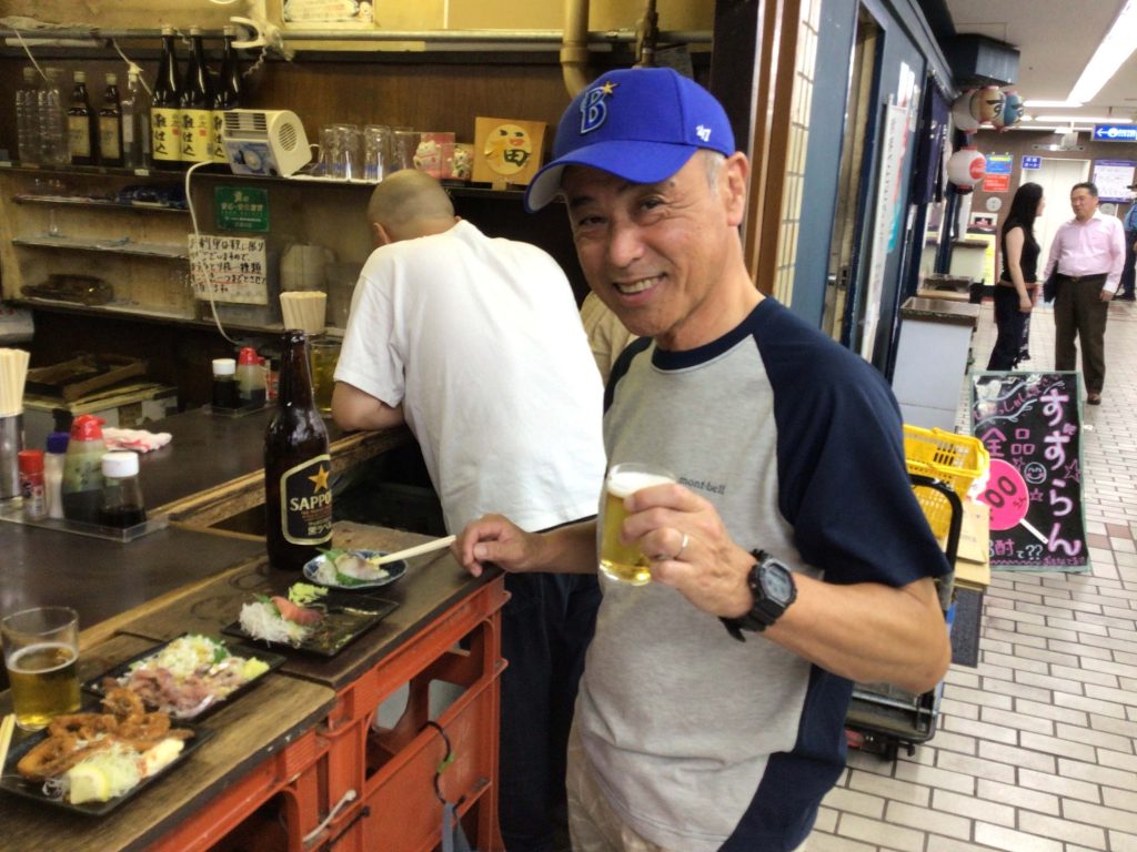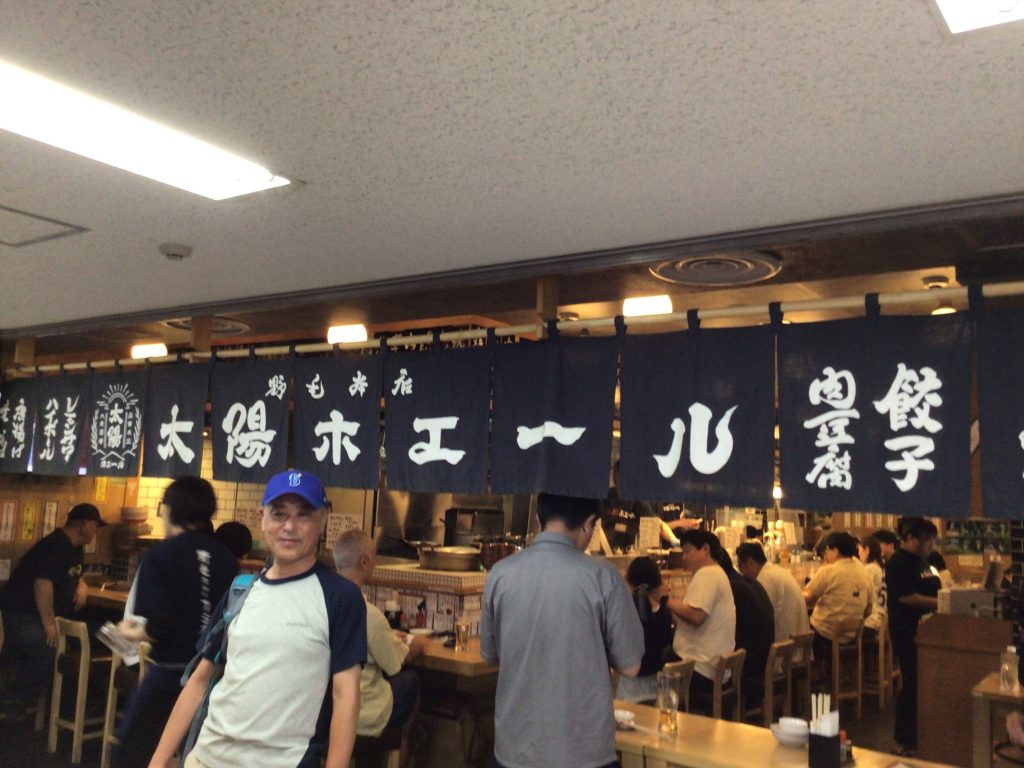 続いて 2件目に「太陽ホエール」というお店に行きました。ベイスターズの前身である大洋ホエールズに因んだお店です。店内にはあちこちに当時の活躍した選手の写真が貼られています。このお店の目玉はまさしく目玉焼き5個まで490円ということで行けば必ず頼んでしまいます。その後はスタジアムに行く途中にある立ち食いそば屋さんでお蕎麦を食べいよいよ野球観戦ですが、ちょっと一杯のつもりがい〜っぱい飲んでの観戦となりました。