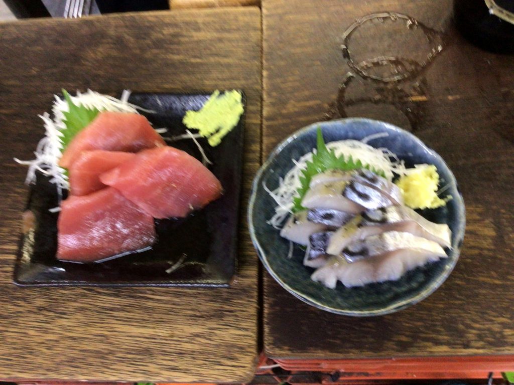 観戦の前に桜木町のびおシティ というところにある居酒屋へ行きました。お昼の時間帯ですが、どのお店も混雑していて並ばないと入れないお店もあるほどです。その中でもとりわけお気に入りの「はなみち」というところにまず入りました この「はなみち」は魚の卸しのお店 なので非常に鮮度が良いものを安く提供しています。いつも同じようなようなものを頼んでしまいますが、マグロが最高に美味しいです。
