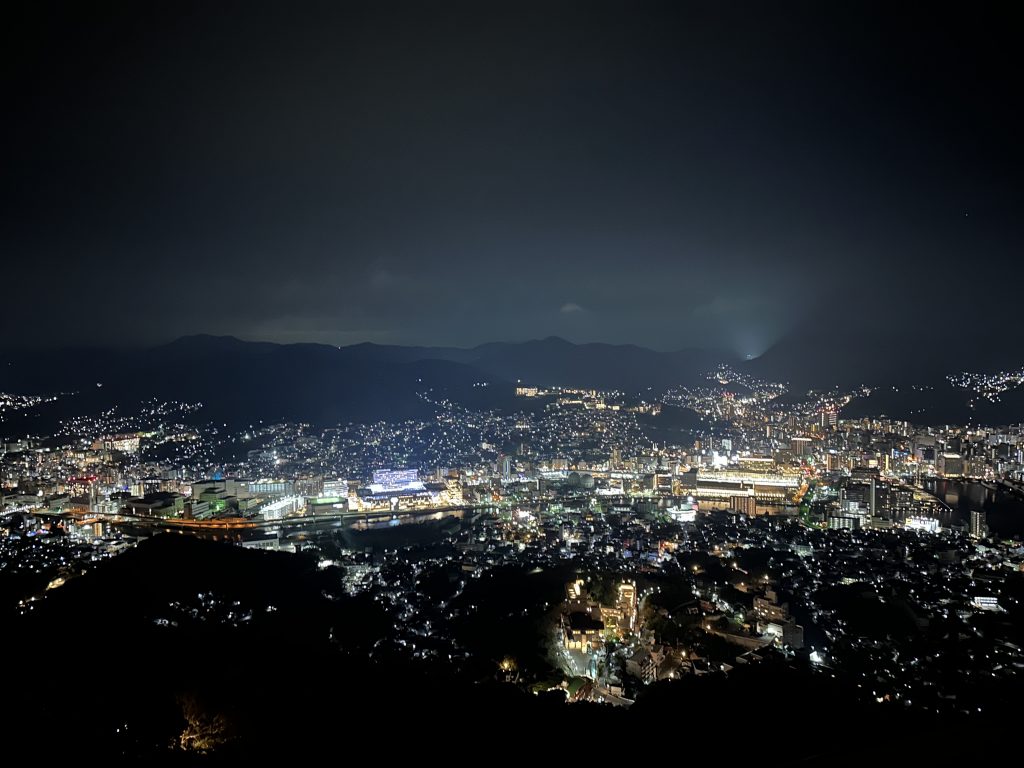ロープウェイで山頂に上がると、長崎市内の街明かりが一望でき、思わず息をのむ美しさでした。港町ならではの夜景は、やはり特別です。