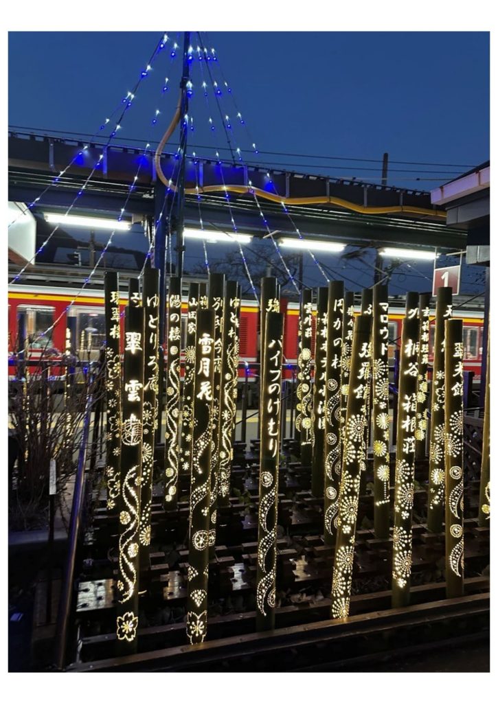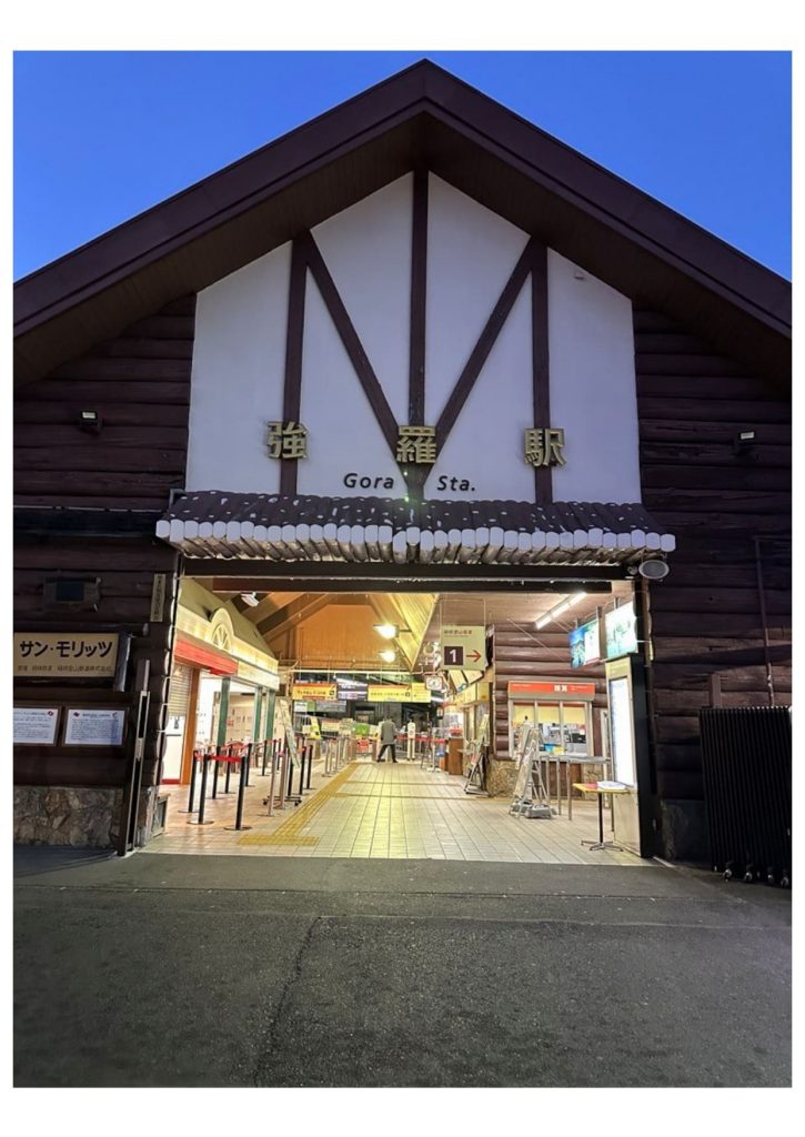 塔ノ沢、大平台、宮ノ下、小涌谷、彫刻の森の駅に着くたびに、電車は反対方向へ走り出すのです。どのような道筋になっているのか、よく分かりませんが、40分掛けて強羅駅に着きました。